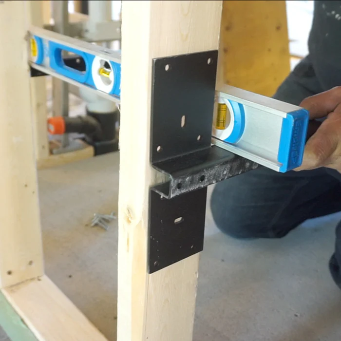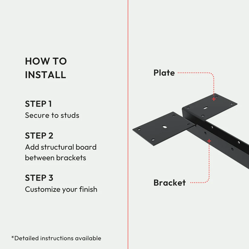 Ultra-minimalist bracket creates a seamless design for floating shower seats, benches, vanities, and more. Invisible structural support kit blends objects right into the wall. Each 8-gauge, galvanized solid steel bracket can hold up to 350 lb. Modular design can be combined for longer structures. Pro install at the rough-in stage.