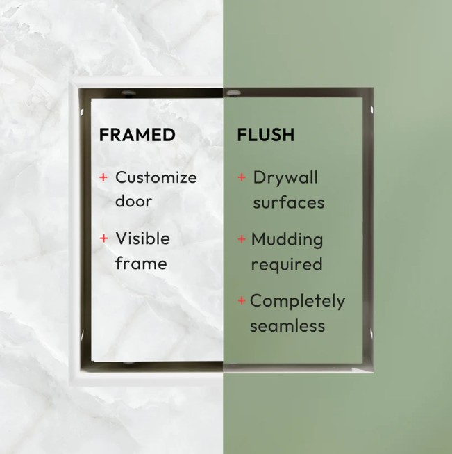 Framed or Flush? What’s the difference between the Flush Drywall No-See Receptacle Mount [Luxe] and the Framed No-See Receptacle Mount [Luxe]?