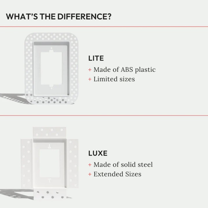 Lite or Luxe? What’s the difference between the Flush Drywall Receptacle Mount [Luxe] and the Flush Drywall Receptacle Mount [Lite]?