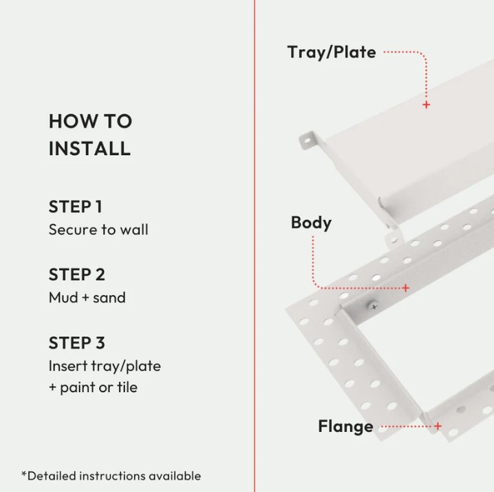 Ultra-minimalist fireplace vent. Customizable center tray with a flush finish for a seamless design that blends right into the wall — once installed, only a rectangular air channel is visible. Compatible with drywall, wood, stone, tile etc. Pro install in 30 minutes.