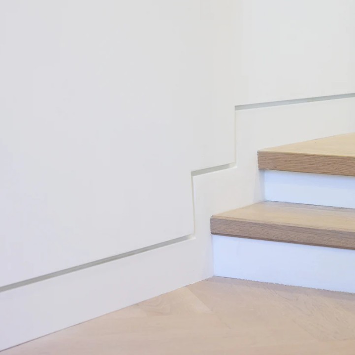 Ultra-minimalist, recessed trim mounts for a seamless design that blends into the surrounding wall. Customizable mount recesses baseboards, door and window trims that match the surrounding aesthetic. Self-aligning profile keeps a perfectly consistent parallel seam between wall and trim — guaranteed. Pro install. Requires drywall mudding.