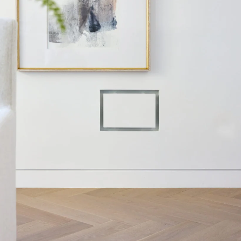 We’ve reimagined old-fashioned grille vents. This innovative, ultra-minimalist design blends seamlessly into the wall, with a paintable center plate that hides the vent in plain sight.
