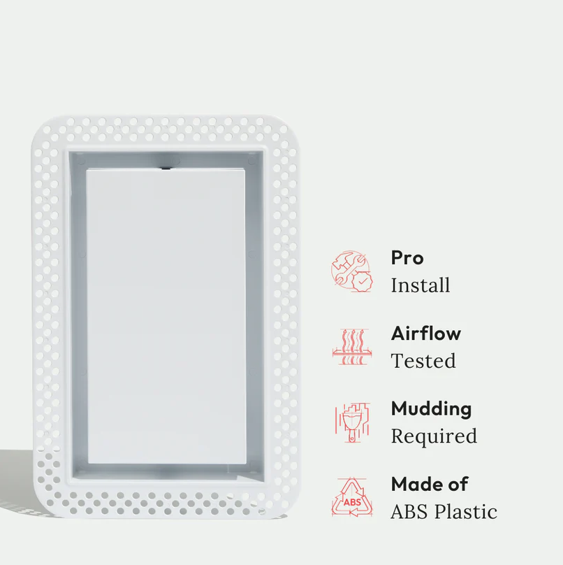 More low-profile than our Framed model, the Flush is a refined upgrade that seamlessly integrates into the wall. Pro install in 30 minutes. Requires drywall mudding. Drywall and HVAC-compatible.
