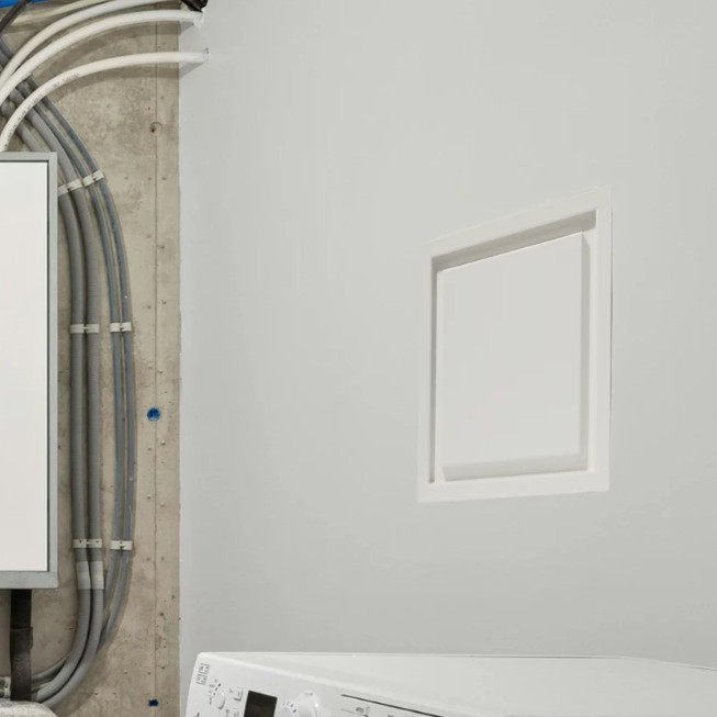 Almost anything. The Framed Access Panel [Luxe] was designed to seamlessly conceal electrical panels, but it’s versatile enough to hide various utilities within walls that require easy access. Common uses include covering cables and wiring, circuit breakers/electrical systems, ductwork, and plumbing/shut-off valves, as well as storage compartments, crawl spaces and attic access points. This minimalist access panel is ideal for keeping these areas out of sight while maintaining convenience.
