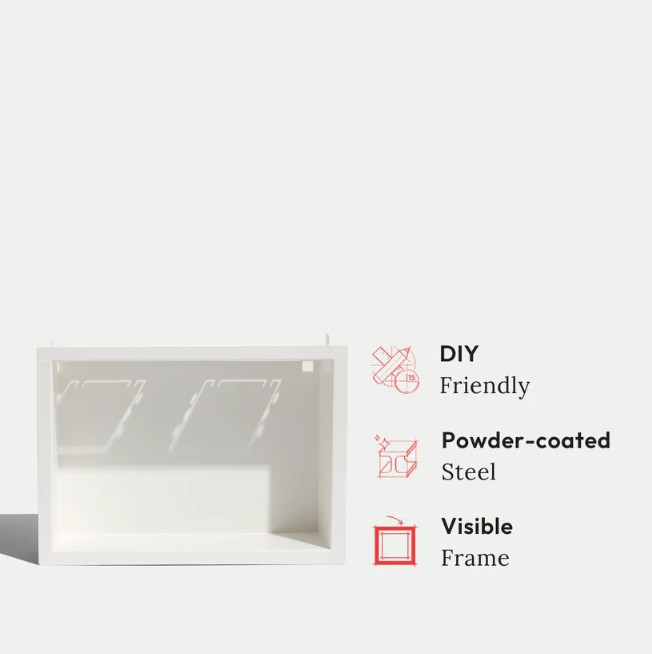 Ultra-minimalist recessed niche for storing pretty much anything you need to keep handy. Customizable with any material. Framed finish for a seamless design that blends right into the wall. Super-easy, DIY install in 15 minutes. Retrofit anytime. Drywall-compatible.
