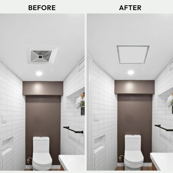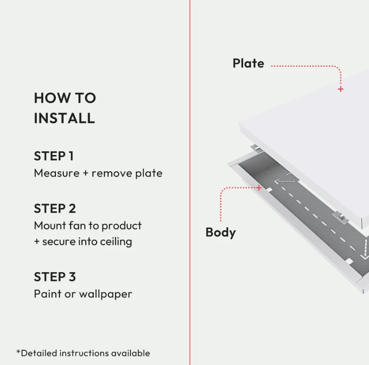 We’ve reimagined old-fashioned grille exhaust mounts. An innovative, ultra-minimalist design seamlessly blends right into the wall or ceiling — a customizable powder-coated steel center plate hides the mount in plain sight. Super-easy, DIY-install in 15 minutes. Retrofit anytime. Drywall-compatible.