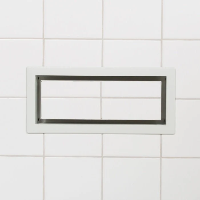 The minimalist Framed Floor Vent [Lite] is designed for heavy materials like tile and wood. It works on floors, and walls that are tiled or wood panelled, but is not compatible with drywall and would not work on ceilings. For drywall and ceiling application, use the Flush Wall Vent [Lite] or Flush Wall Vent [Luxe].